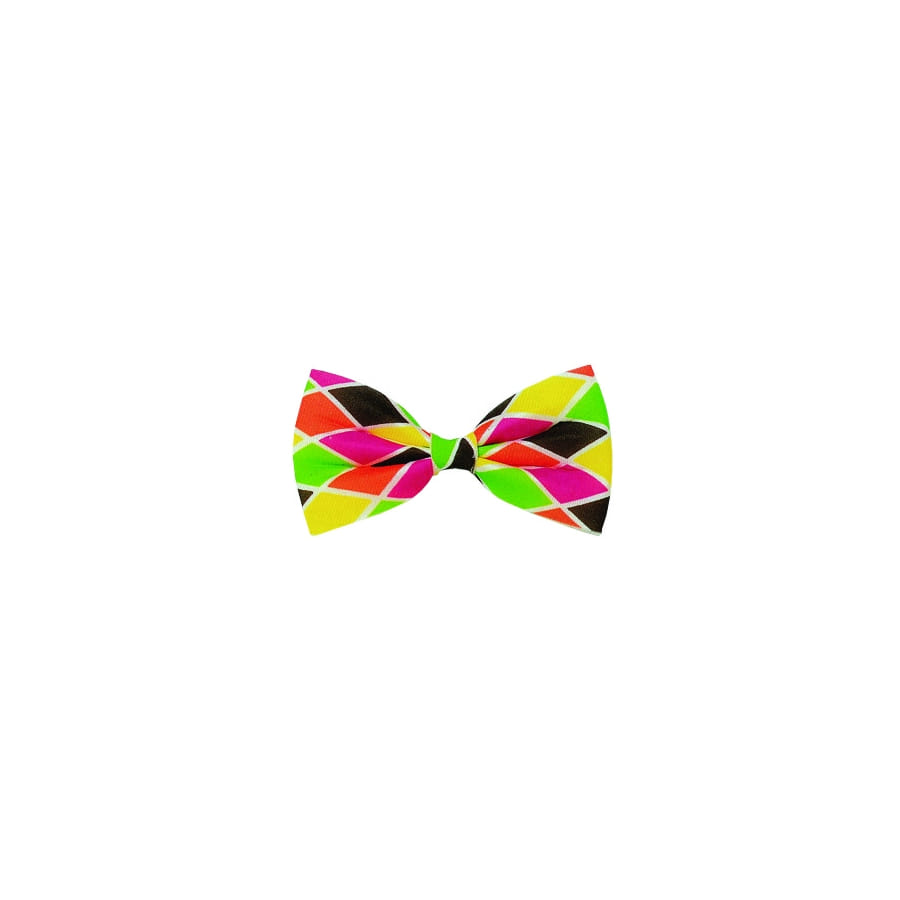Superbe noeud d'arlequin fluo unisexe. Cet accessoire mesure 13 centimètres de largeur sur 8.5 centimètres de longueur. Il est très approprié pour un déguisement de clown pour un carnaval.