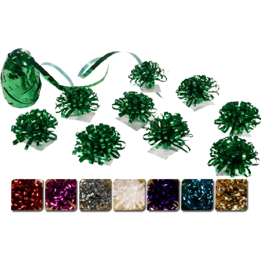 Lot de 9 fleurs mesurant chacune 5 centimètres de diamètre et comportant un bolduc métallisé. Il existe 8 couleurs de fleurs possibles: blanc, argent, or, champagne, turquoise, vert, rouge et fuschia. Le bolduc mesure 10 mètres de long sur 5 millimètres de large. Au moment de votre commande, vous ne pourrez choisir ni le modèle ni la couleur des fleurs. Vous recevrez une de celles mentionnées.