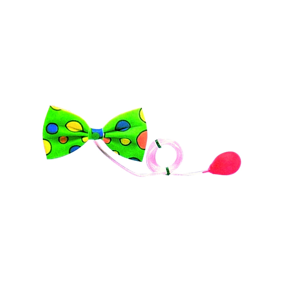Noeud de clown vert fluo à pois multicolores pour homme ou femme. Le noeud fait 13.5 centimètres de largeur sur 7.6 centimètres de hauteur. C'est l'accessoire idéal pour vous déguiser en clown et faire des blagues à vos amis.