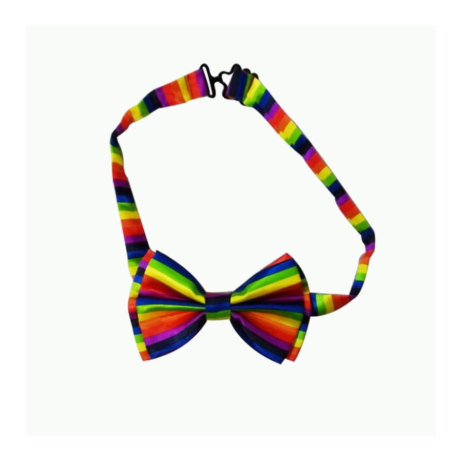 Rajoutez des couleurs et du charme à votre costume en arborant ce splendide noeud papillon arc en ciel que nous vous proposons ! Celui-ci mesure 12 x 7.5 cm, et possède des rayures multicolores. Il peut s'associer avec de nombreux déguisements pour homme et pour femme, tel qu'un déguisement de clown, un déguisement hippie, un costume disco...