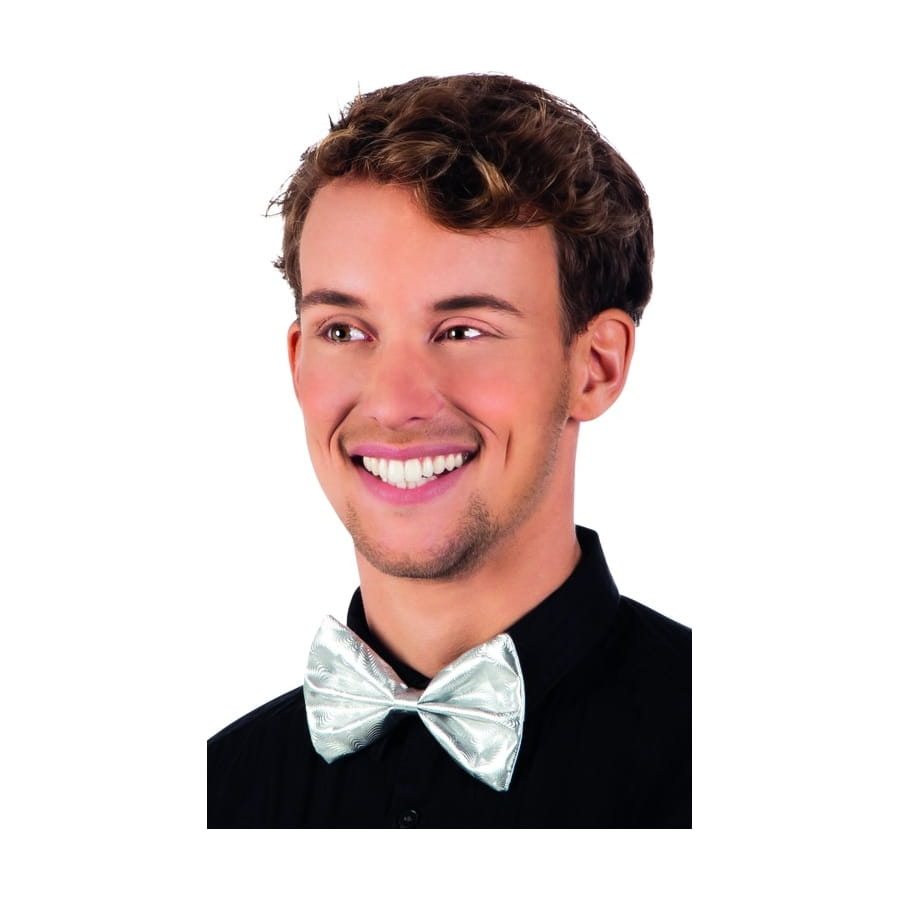 Voici un joli noeud papillon argenté uni, destiné à la gente masculine.