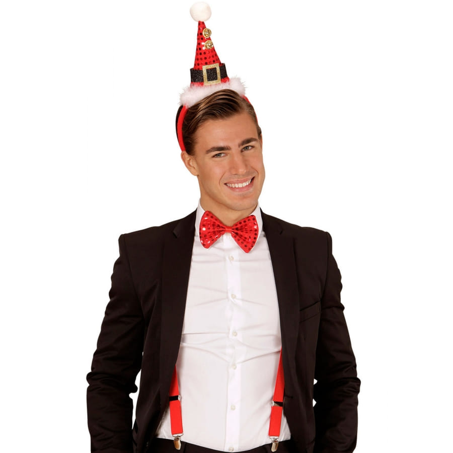 Optez pour notre kit noeud papillon et chapeau pointu de Noël et transformez vous en véritable Mère Noël le temps des fêtes de fin d'année.