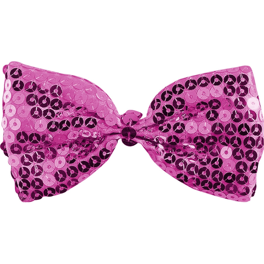Noeud papillon de couleur fuchsia et agrémenté de paillettes de la même couleur. Cet accessoire mesure 11 centimètres de largeur sur 7 centimètres de hauteur. C'est un accessoire idéal pour mener à bien un rôle de danseur pour une soirée disco!