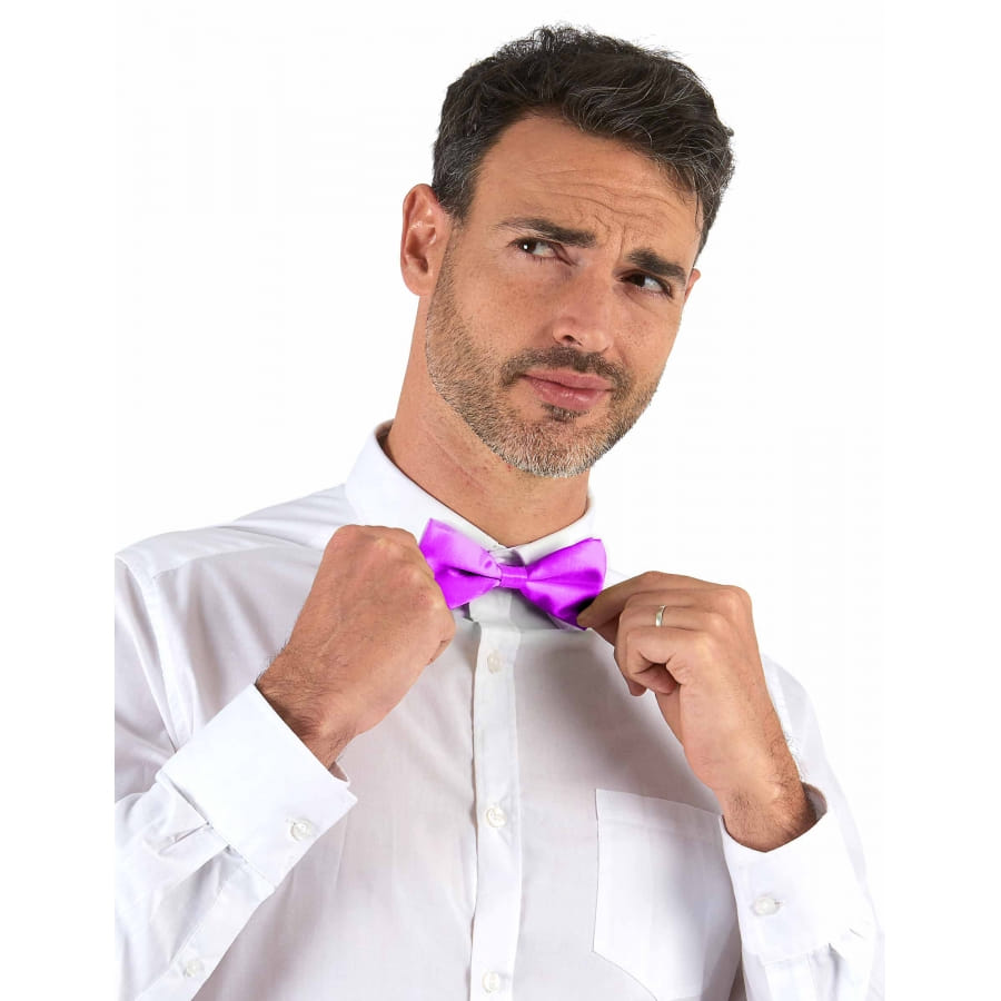 Mettez une touche de classe et d'élégance dans votre enterrement de vie de garçon grâce au noeud papillon rose fuchsia.