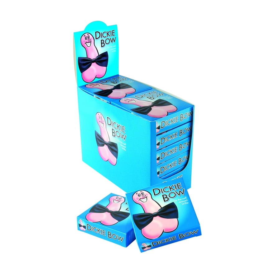 Des fois, il faut bien savoir miser sur l'humour pour mettre de l'ambiance. Si vous êtes un petit farceur, nous vous lançons le défi d'offrir ce paquet contenant un noeud papillon sur un zizi en guise de cadeau à l'un(e) de vos ami(e)s. Quiconque recevra ce paquet de couleur bleue sera mort de rire car à l'intérieur il trouvera un zizi de couleur rose avec un noeud papillon noir, quelque chose que l'on ne voit pas tous les jours. Il est interdit de vendre cet accessoire aux mineurs.