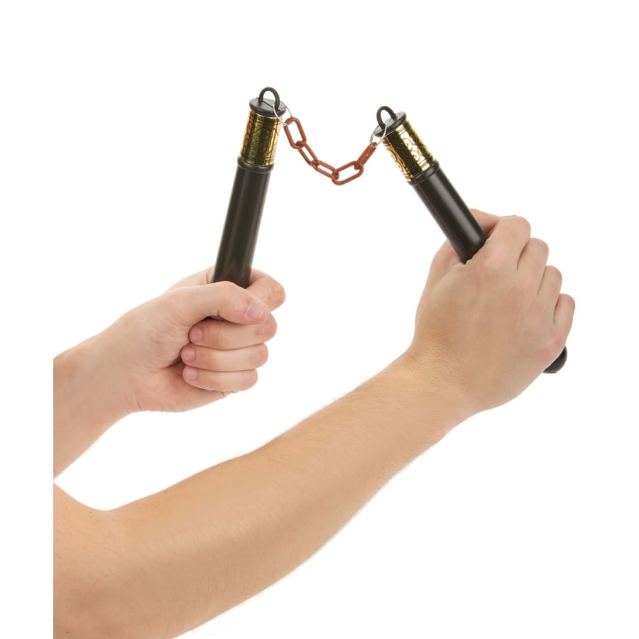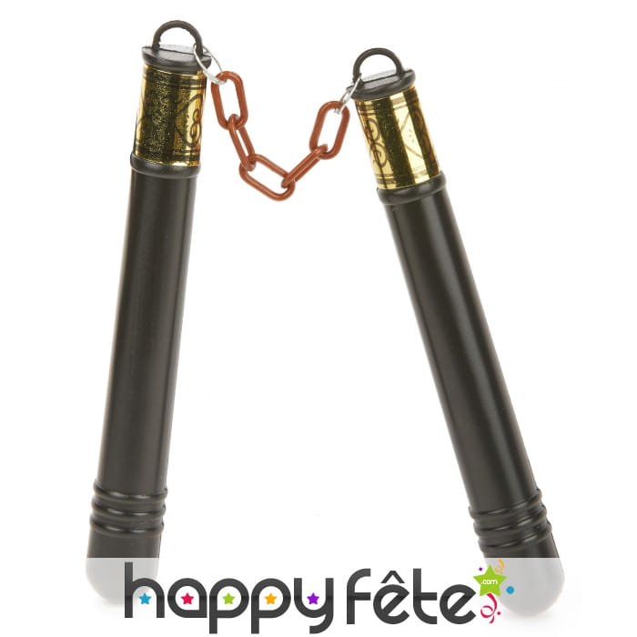 Optez pour le look asiatique en vous armant de ce nunchaku en plastique noir de 20cm.
