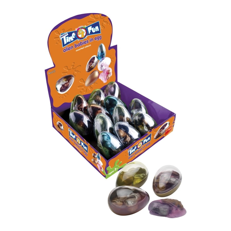 Oeufs semi-transparents renfermant des aliens dans du liquide. Evitez tout contact avec vos vêtements ou autres tissus. En cas de besoin, rincez vite avec du vinaigre ou de l'eau chaude. Ce jouet ne convient pas aux enfants de moins de 3 ans. Il est parfait pour une soirée spéciale science-fiction entre amis.