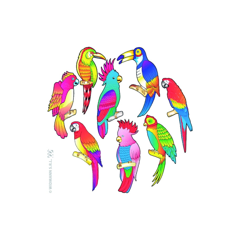Pour un anniversaire, une fête ayant pour thème la nature, l'exotisme, Hawaï ou les Antilles , ces 8 oiseaux seront de magnifiques décorations. chacun d'eux mesure environs 45cm de hauteur. Il n'est pas possible de choisir le modèle, vous recevez 8 modèles pris au hasard sur un lot global.