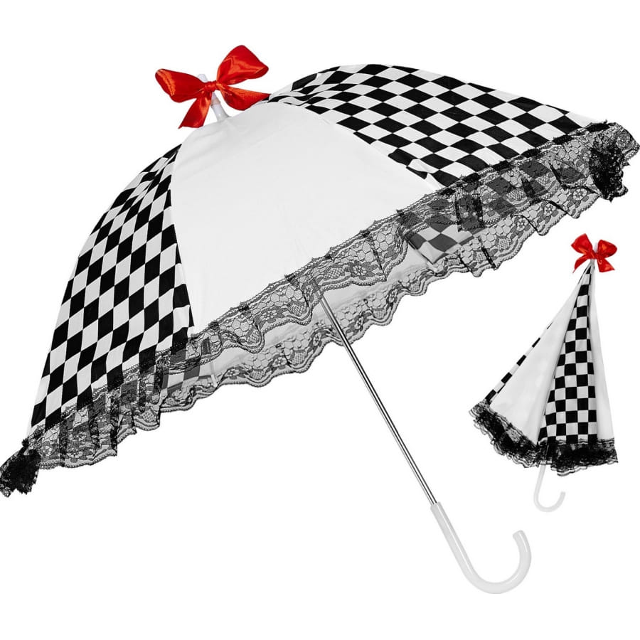 L'ombrelle arlequin damier noir et blanc est un accessoire destiné aux femmes.