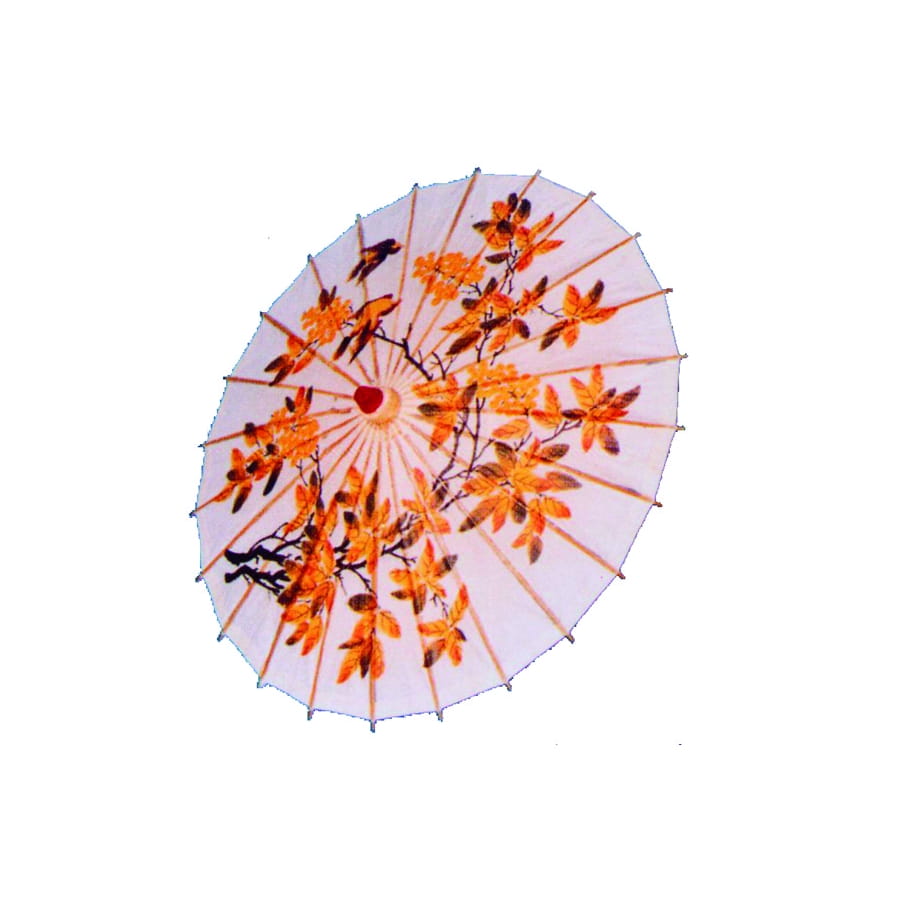 Ombrelle chinoise beige, marron et orange. Cet accessoire mesure 60 centimètres de diamètre. C'est un accessoire idéal pour compléter un déguisement de Chinoise ou de Japonaise.