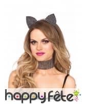 Les oreilles de chat avec tour de noirs en strass sont des accessoires pour femme.