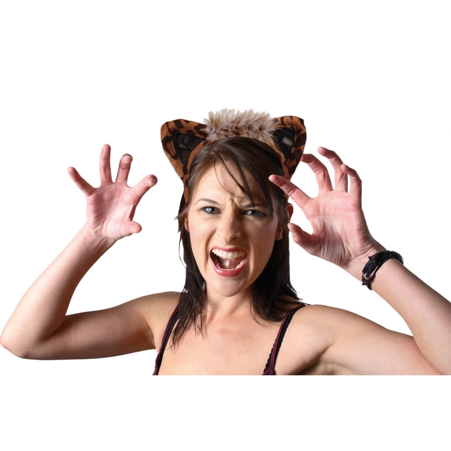 Un gros félin sommeille en vous ! Portez fièrement ces oreilles de léopard sur serre-tête lors du carnaval. Il s'agit d'un accessoire très original pour homme ou femme, composé d'un serre-tête de couleur marron sur lequel ont été posées deux oreilles de léopard. Il est aussi agrémenté d'une légère couche de fausse fourrure au centre.