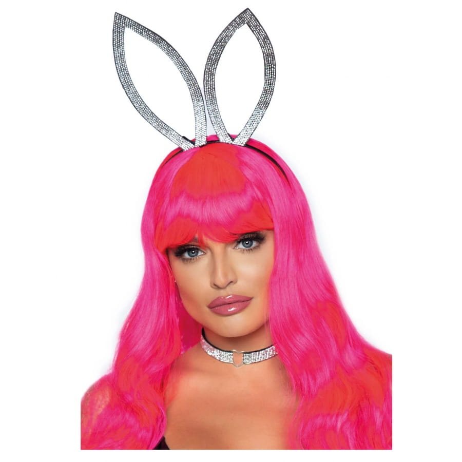 Changez-vous petit lapin coquin le temps d'une soirée de la Saint Valentin, avec les oreilles et collier lapin en strass argentés.
