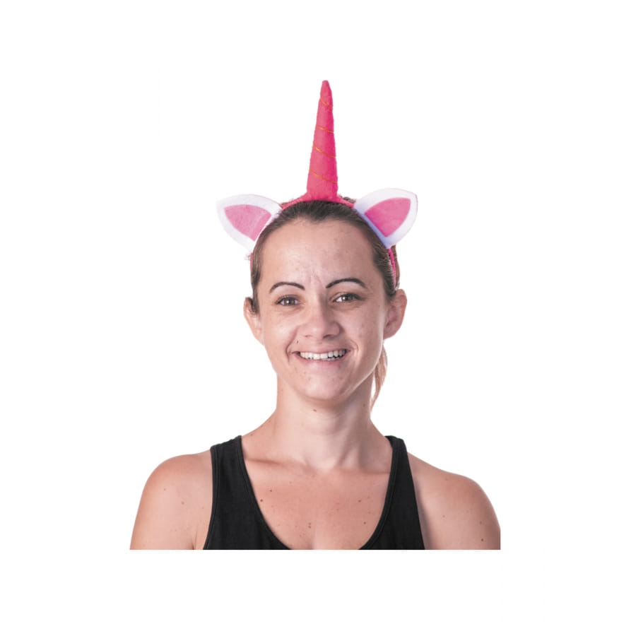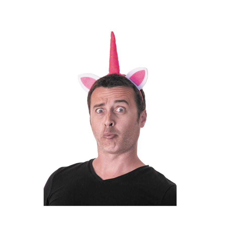 Le serre-tête surmonté d'oreilles et corne de licorne est l'accessoire indispensable pour votre déguisement de licorne.