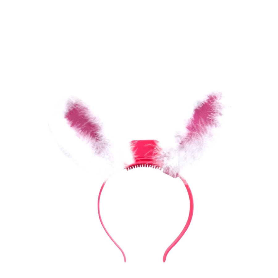 Paire d'oreilles de lapin lumineuse pour fille. Ces oreilles sont montés sur un serre-tête rose et les oreilles sont en fausse fourrure avec un intérieur lumineux.