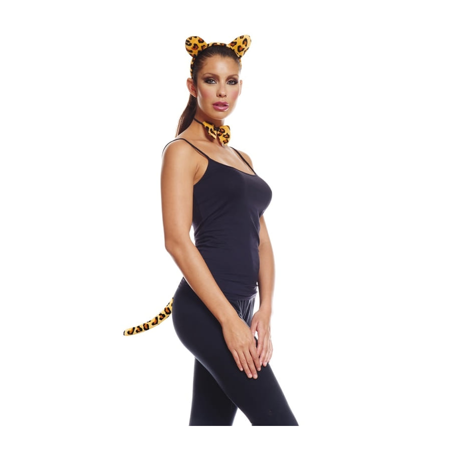 Avec le léopard et la tigresse, voici encore un autre kit pour les femmes félines ! Ces oreilles, queues et noeud de panthère pour femme siéront parfaitement au carnaval ou une fête sur le thème des animaux. Le tout est en jaune strié de marron. Vous y retrouverez une petite queue, un noeud et un serre-tête portant les oreilles.