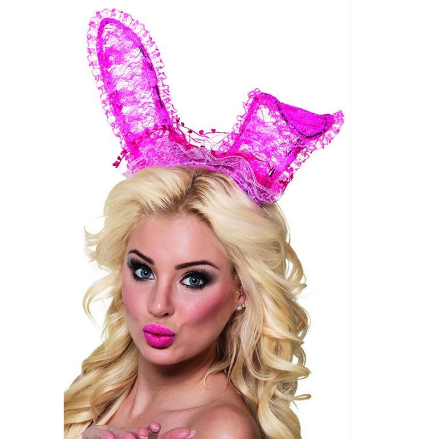Vous allez adorer ce serre-tête surmonté d'oreilles rose de lapin en dentelle pour adulte.