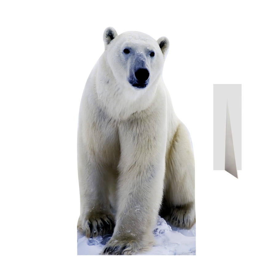 Voici une silhouette en carton représentant un ours blanc, le plus grand carnivore terrestre de la planète. Elle mesure 176 cm de hauteur, faite en carton plat. C'est une silhouette originale et impressionnante, idéale pour une décoration de salle lors de vos fêtes à thème, notamment une soirée Animaux.