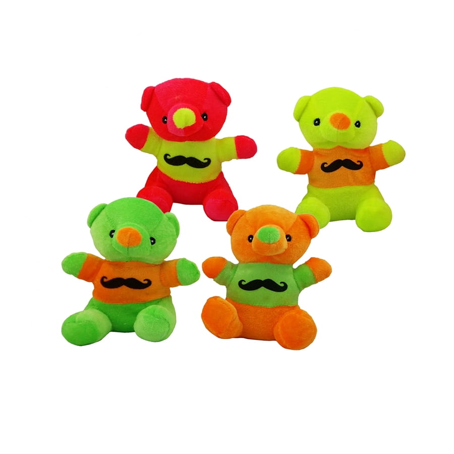 Nous mettons ce tout petit ourson très mignon à la disposition de tous les loulous. Ils est de couleur fluo et mesure 15 cm. Le petit ourson porte un tee-shirt imprimé d'une petite moustache noire sur le devant. Il est vendu à l'unité, et vous ne pourrez pas choisir les couleurs lors de la commande.