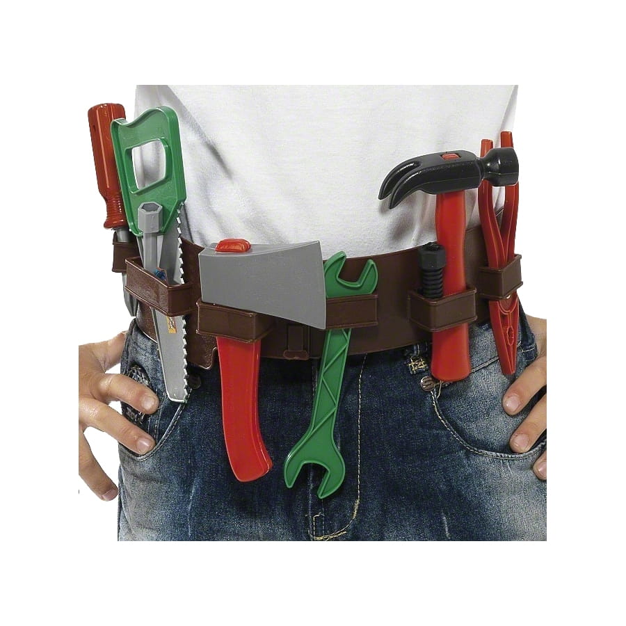 Votre enfant portera bien à sa taille ce set d'outils lorsqu'il se déguisera en ouvrier lors d'un anniversaire. Parfait accessoire de l'ouvrier, il ne pourra même plus se passer de ce set. Votre enfant passera des heures a bricoler avec ce set d'outils. Cette panoplie se compose d'un tournevis, d'une pince de couleur rouge ainsi que une hache, une scie et d'une clé mixte. Vous y trouverez aussi un marteau rouge et noir.