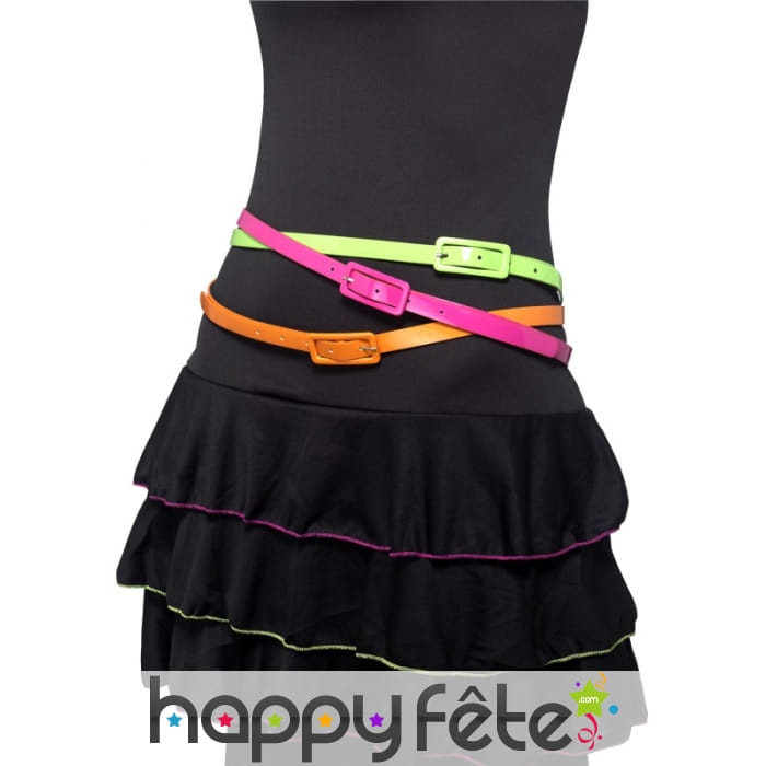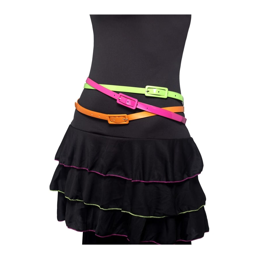 Égayez votre tenue ou votre déguisement à l'aide de ce pack de 3 ceintures néon. Elles sont de couleur variées, notamment le rose, l'orange et le vert. Elles correspondent à une taille unique qui sied à une multitude de tailles.