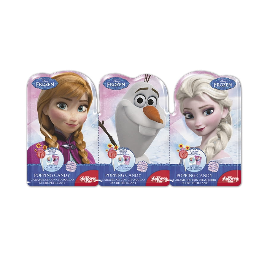 Goûtez à des friandises de princesse ! Le pack de 3 sucres reine des neiges pétillants, 54 g, vous propose de délicieuses sucettes qui pétillent dans la bouche, sans gluten. Cet article sous licence Disney présente Anna, Elsa et Olaf sur un fond blanc et bleu. Des petits stickers à collectionner sont enfermés dans les sachets.