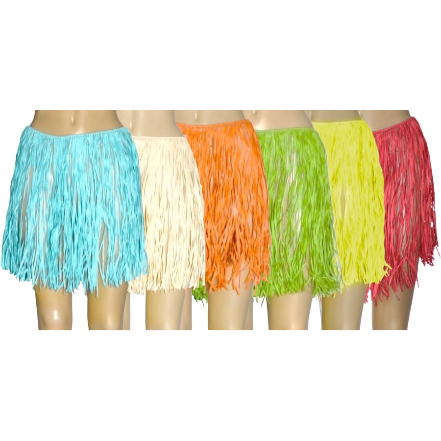 Pagne en raphia naturel mesurant 40 centimètres de long. Le pagne existe en bleu, beige, orange, vert, jaune et rose, mais au moment de la commande, il vous sera impossible de choisir ni la couleur ni le modèle. Vous recevrez une des 6 couleurs existantes. C'est un accessoire indispensable pour une fête hawaïenne.