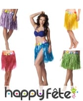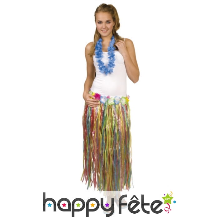 Nous vous proposons ce pagne Hawaïen long multicolore en plastique pour mettre en valeur votre déguisement de danseuse ou de fille des îles.