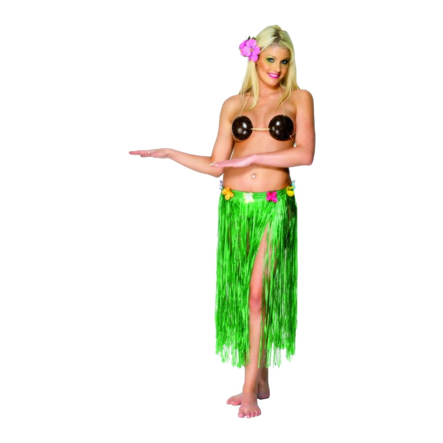 Laissez-vous tenter par ce long pagne en raphia de couleur vert avec fermeture velcro. Cet accessoire est parfait pour compléter un déguisement hawaïen ou d'Antillaise.