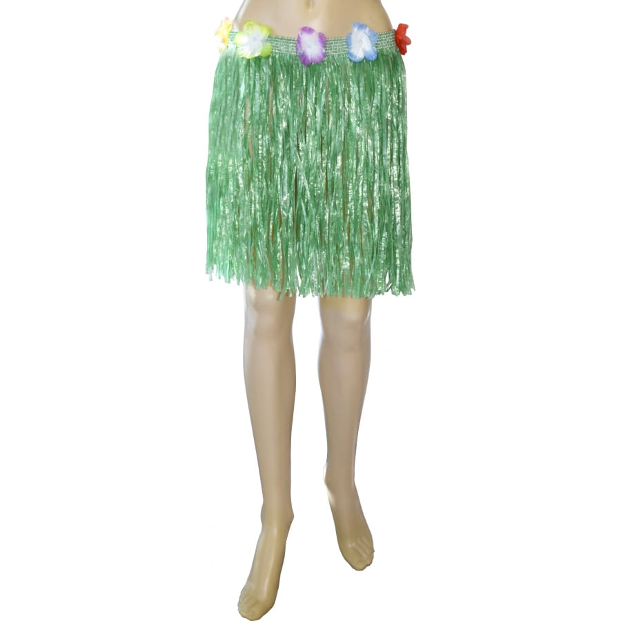 Vous ne cesserez plus de dire Aloha, avec ce joli look vahiné dans ce pagne en raphia court. En parfaite danseuse exotique vous allez enflammer la piste de danse ou tous les regards seront dirigés sur vous dans ce pagne en raphia court de 45 cm en vert avec des fleurs sur la ceinture.