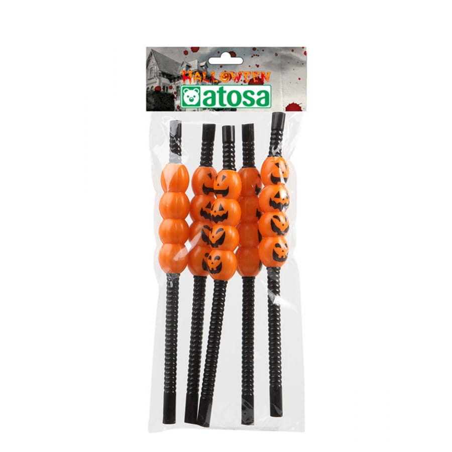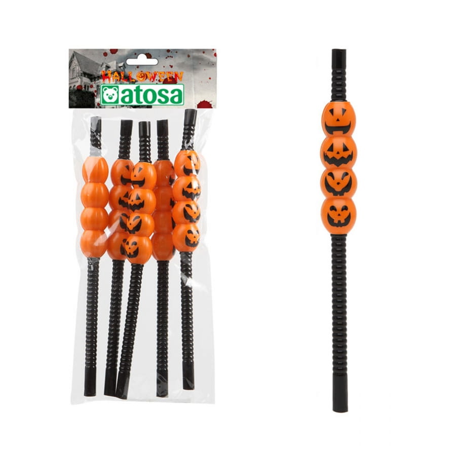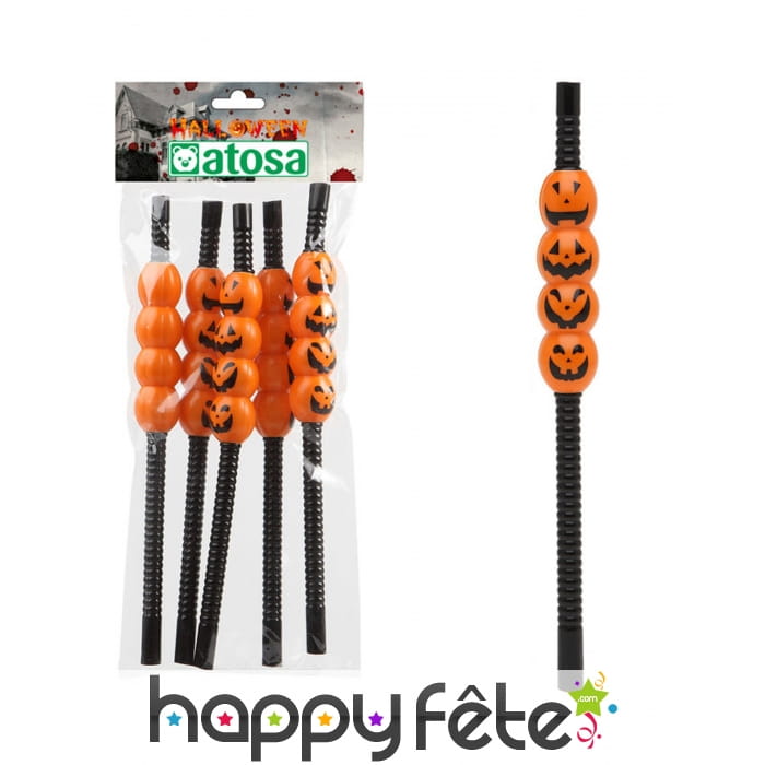 Les pailles citrouilles de 22 cm par 5 sont en plastique noir.