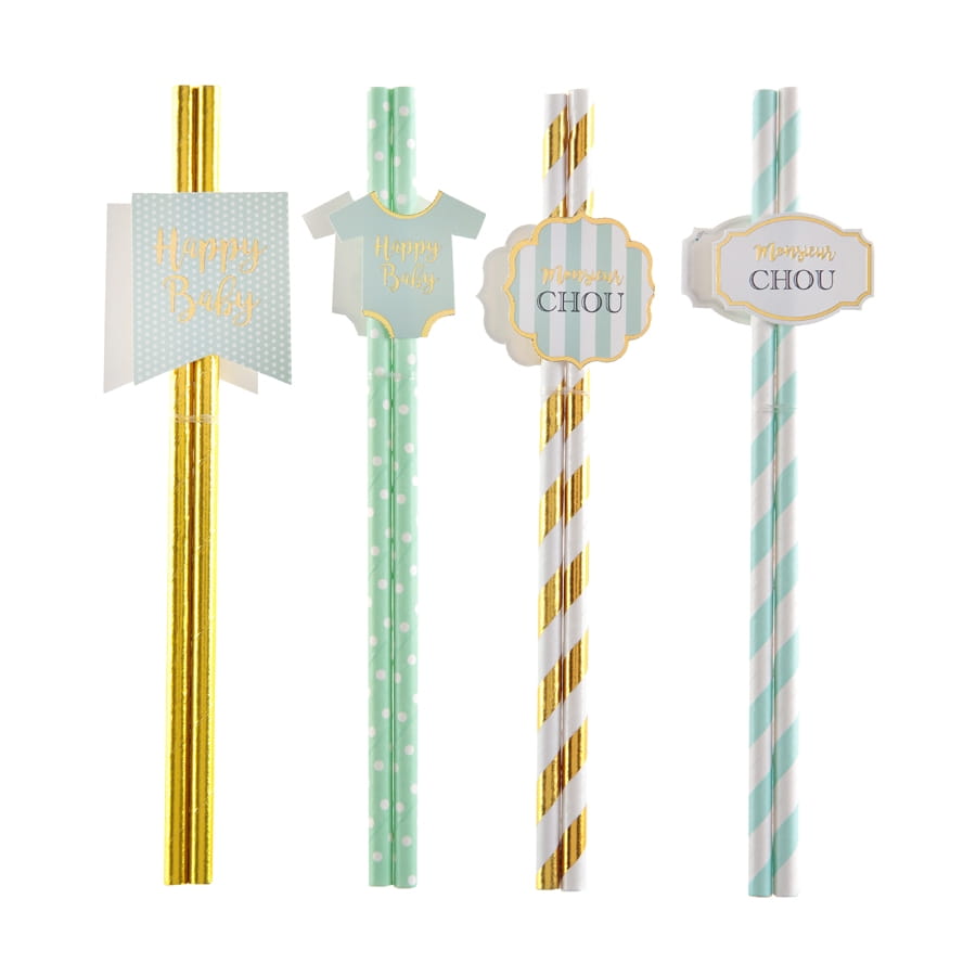 Il est temps pour vous d'organiser une fête pour célébrer la naissance de votre petit trésor. Ces pailles de baptême, garçon sont proposées pour décorer les verres de vos invités. Elles sont de couleur bleue et font 19,2 x 0,6 cm de dimension chacun. Vous disposerez d'une boîte contenant 8 pailles.