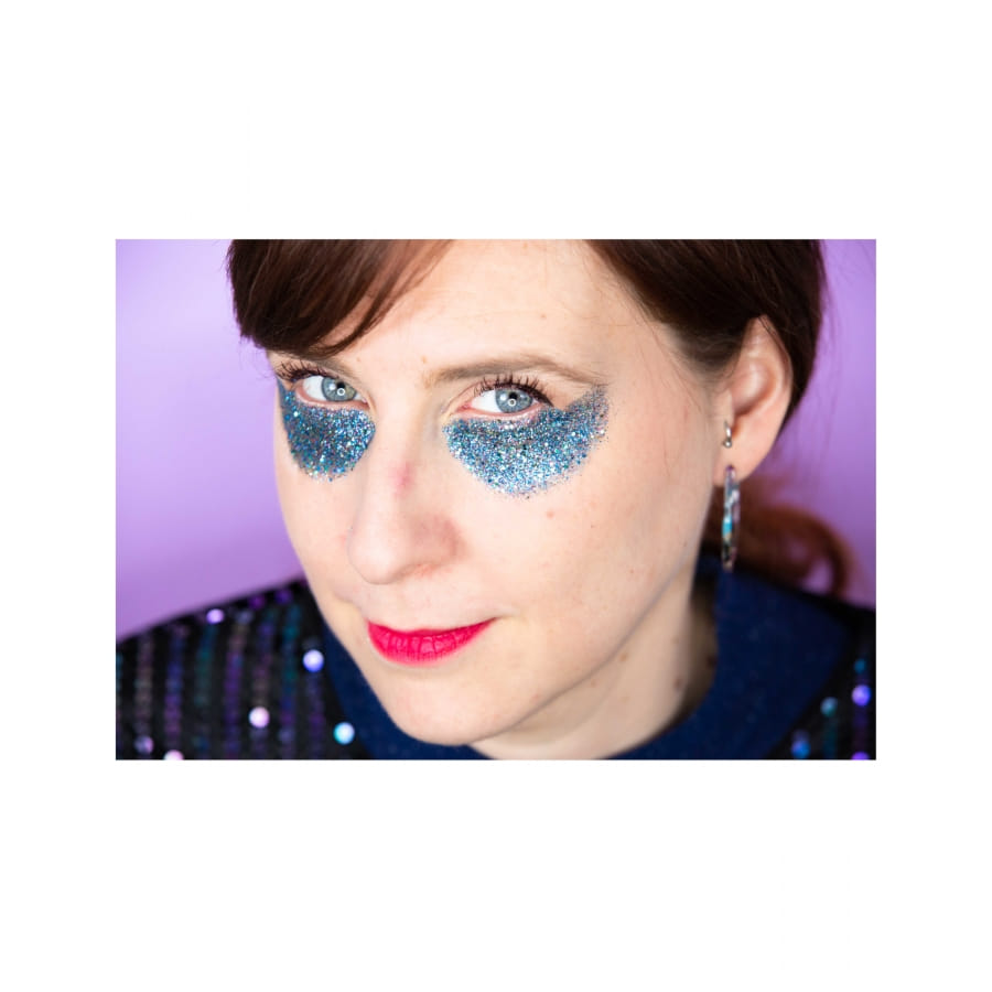 Faites parler votre goût pour les couleurs et le rétro, avec les paillettes bleu galaxy pour la peau biodégradables.