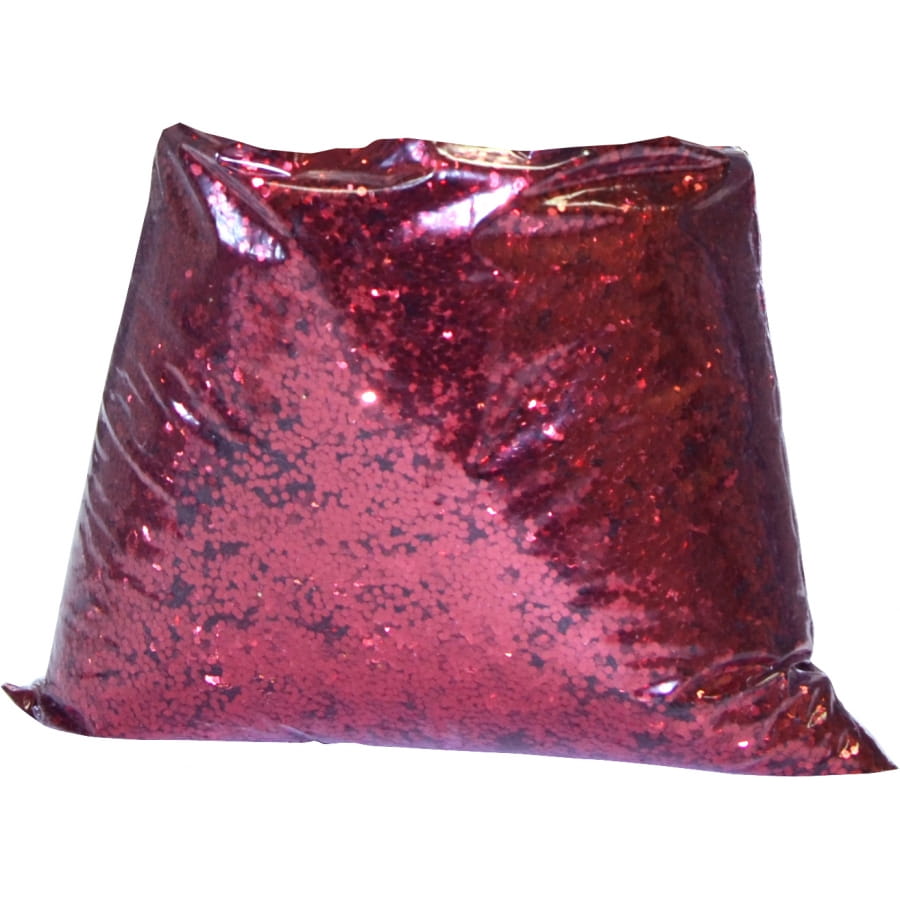 Sachet de paillettes fines de couleur rouge. Chacune des paillettes mesure 0.4 millimètres et le sachet pèse 1 kilo. Servez-vous-en pour une décoration de Saint Valentin haute en couleurs.