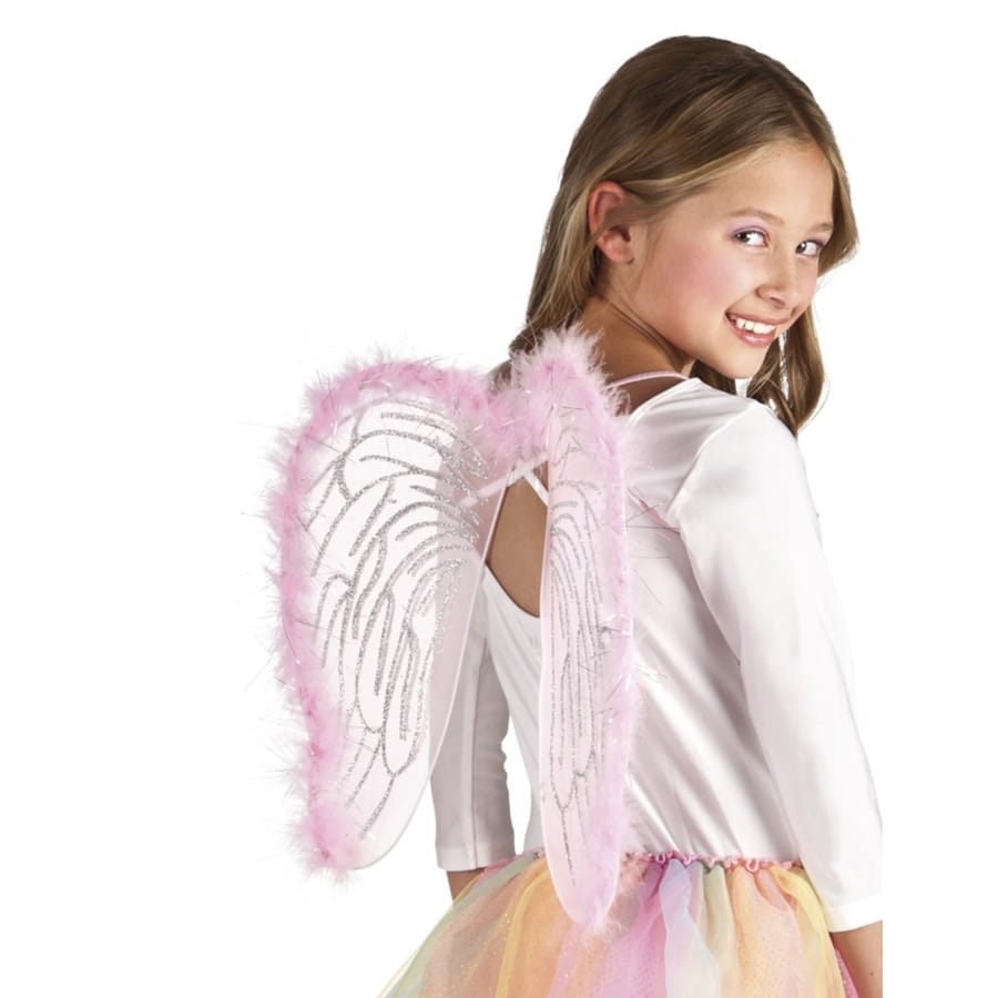 La paire d'ailes roses de 40 x 33 cm pour enfant est un accessoire indispensable pour finaliser un costume d'ange.