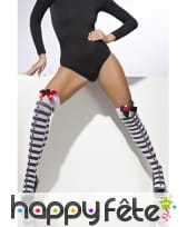 Mettez en valeur votre mini jupe en y ajoutant de longs bas. Cette paire de bas noirs avec noeud blanc est conseillée pour la Saint-Valentin. Les bas sont de couleur noir opaque avec une longueur qui remonte jusqu'à mi-cuisses. Chacun d'eux est agrémenté d'un petit noeud blanc tout mimi sur le devant.