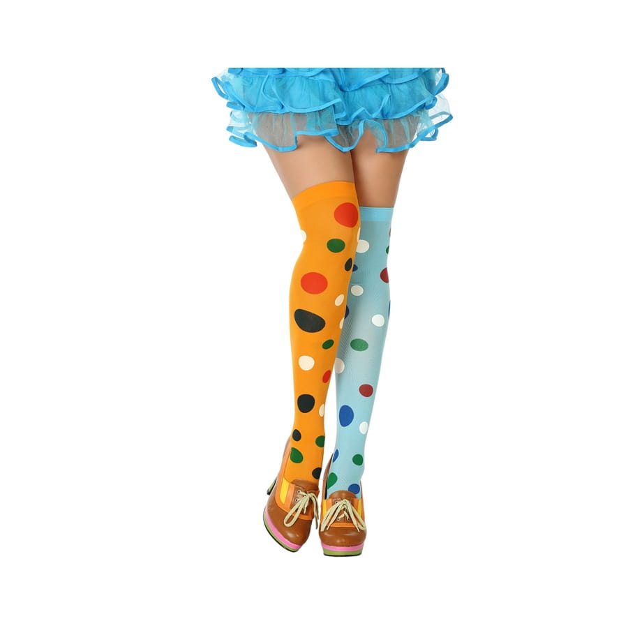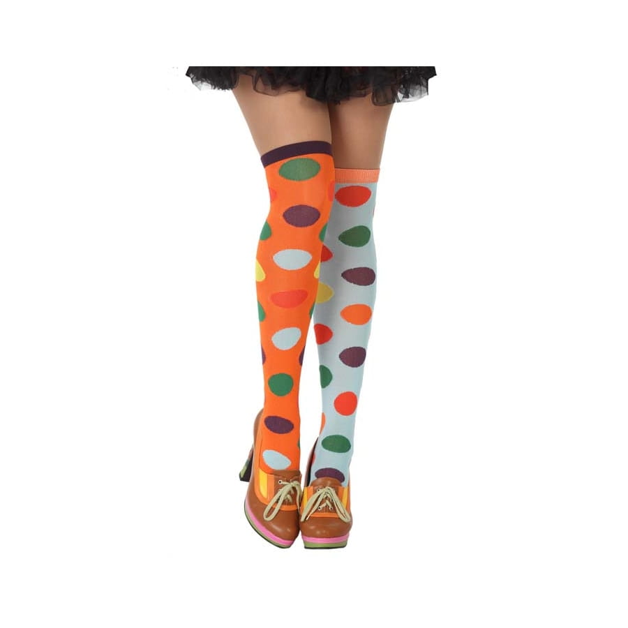 Portez votre humour vers des sommets avec cette paire de bas de clown à pois colorés.