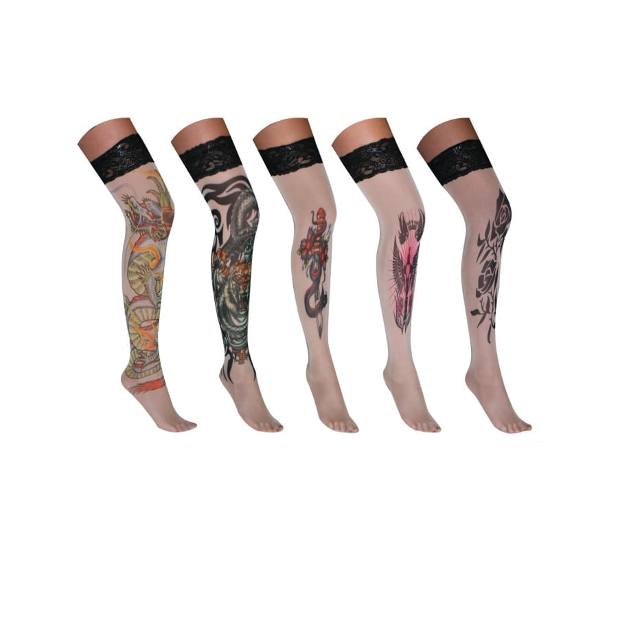 Avant d'opter pour un tatouage permanent, essayez d'abord cette paire de bas effet tatouage adulte pour voir l'effet sur votre corps.