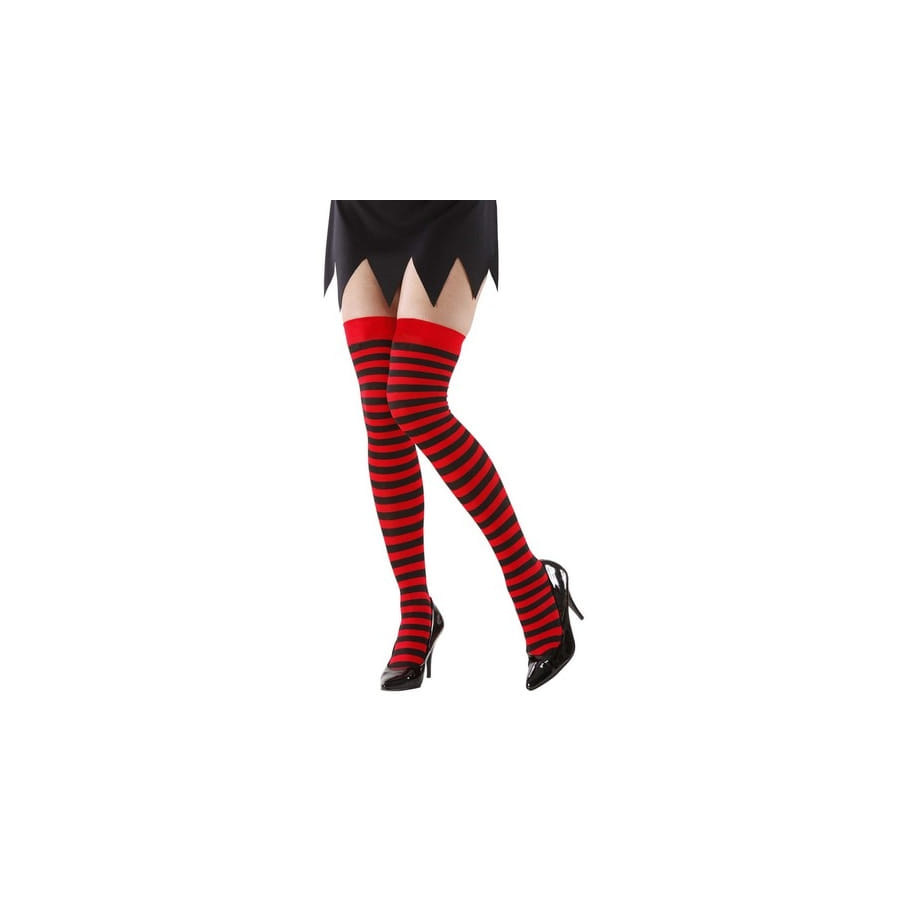Cette paire de bas rayés noirs et rouges vous ira à merveille.