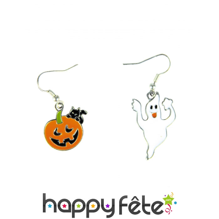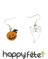 En forme de crochet métallique, ces boucles possèdent des pendentifs relatifs à la fête d'halloween.