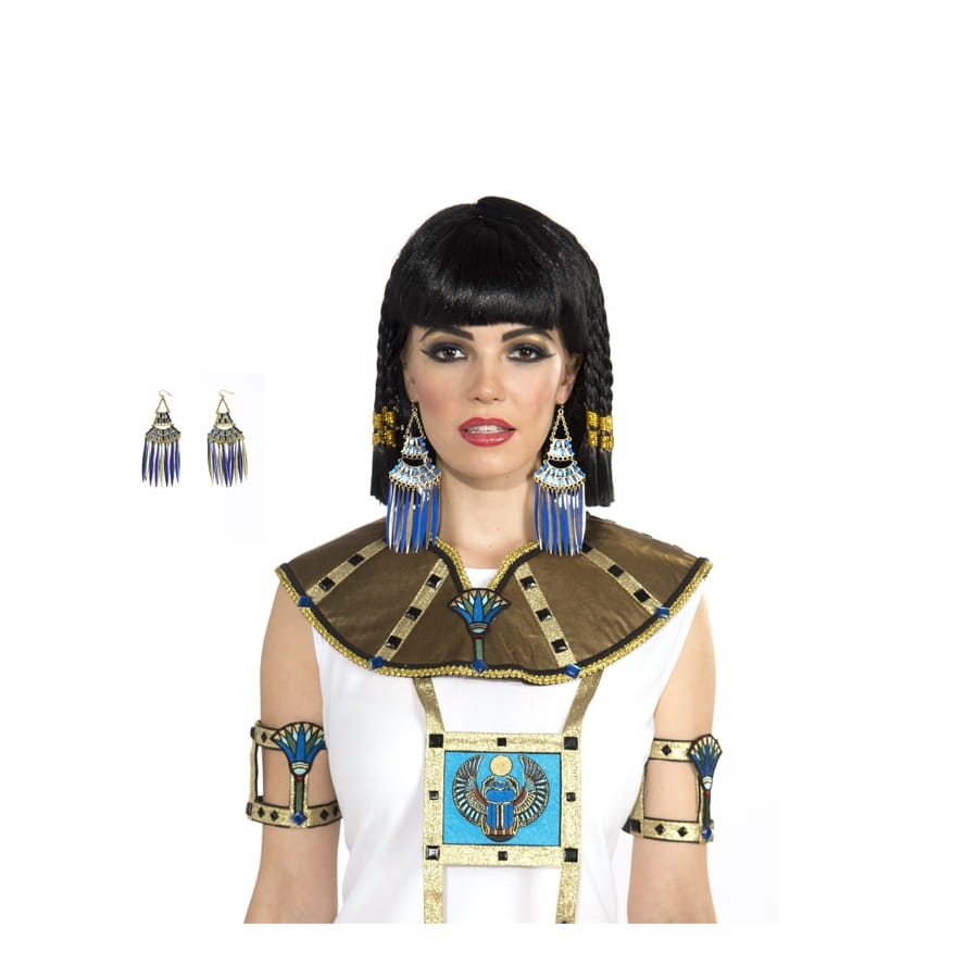 Devenez une véritable déesse avec cette paire de boucles d'oreilles Égyptiennes ! Ces boucles d'oreilles sont de couleur bleue et dorée. Elles sont longues et richement décorées. Cet accessoire accompagnera parfaitement tous les déguisements féminins égyptiens, que ce soit un déguisement de Cléopâtre, de Néfertiti, de princesse, etc..., et se prêtera à toute occasion festive : fête déguisée, soirée à thème ou carnaval...