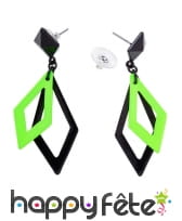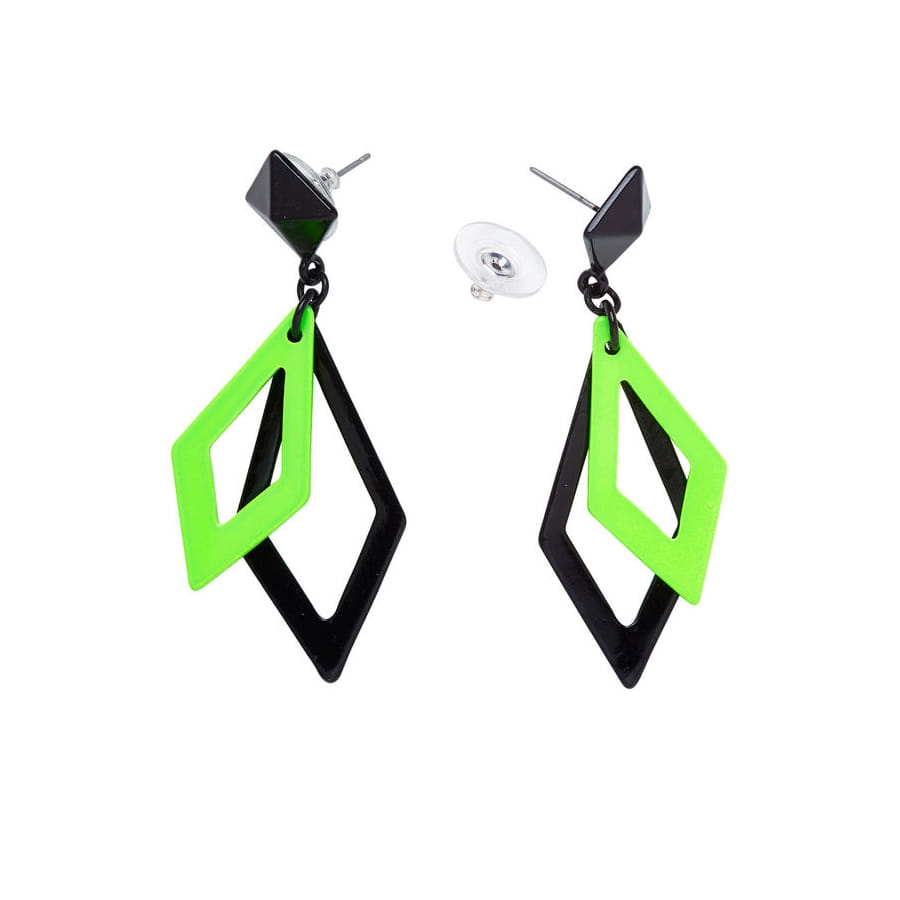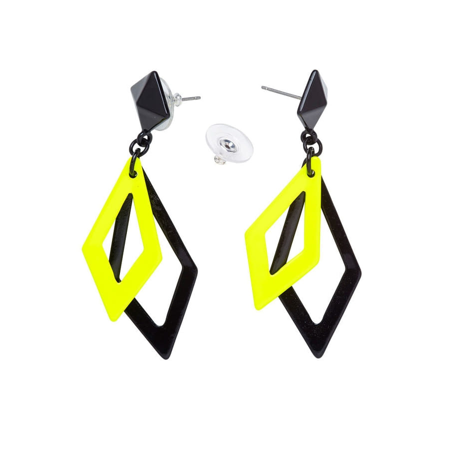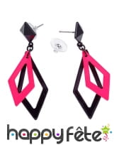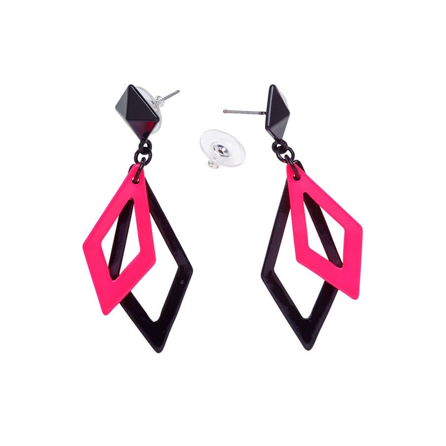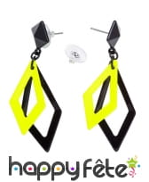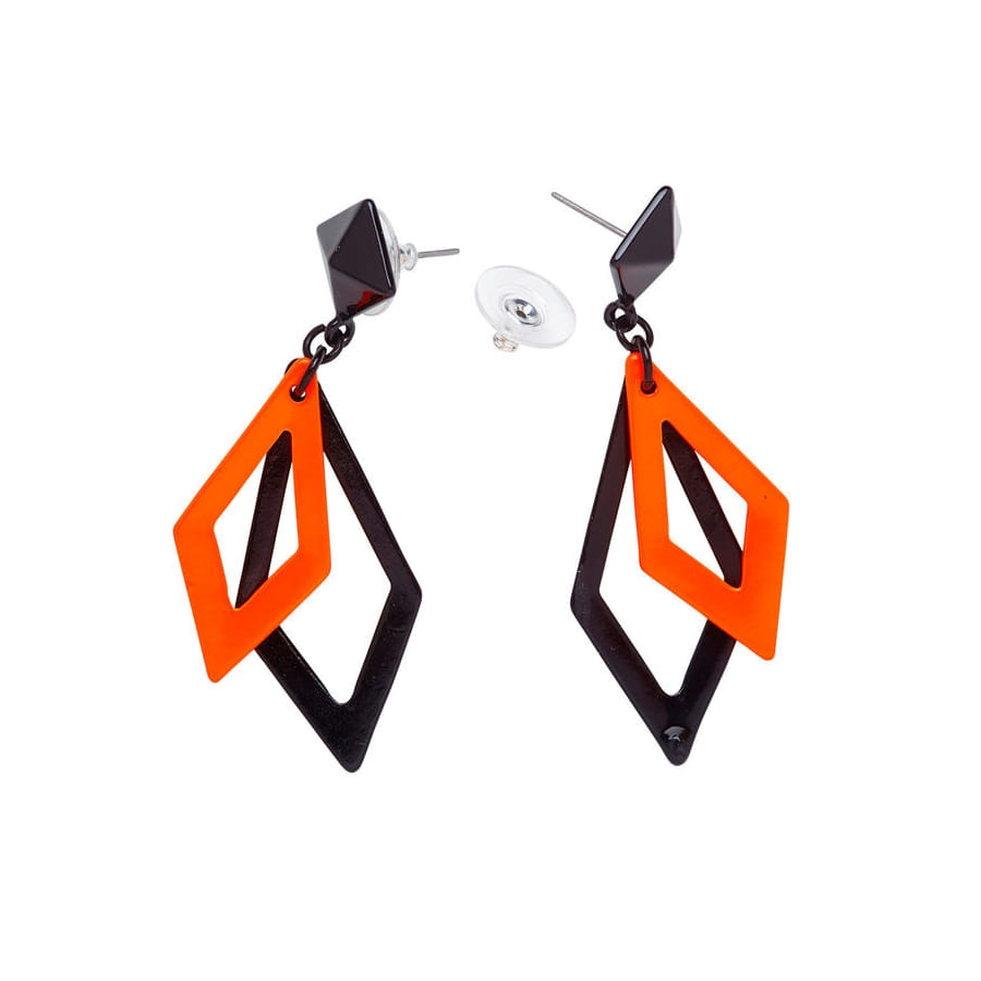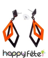 Ces boucles dotées d'un fermoir en plastique sont constituées d'un losange noir et un autre coloré .