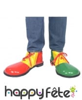 Revêtez l'une de ces paires de chaussures de clown multicolores pour compléter votre déguisement. Il vous sera impossible de choisir la couleur ou le modèle lors de l'achat. Les chaussures vous seront livrées comme présentées. Elles sont parfaites pour un carnaval.