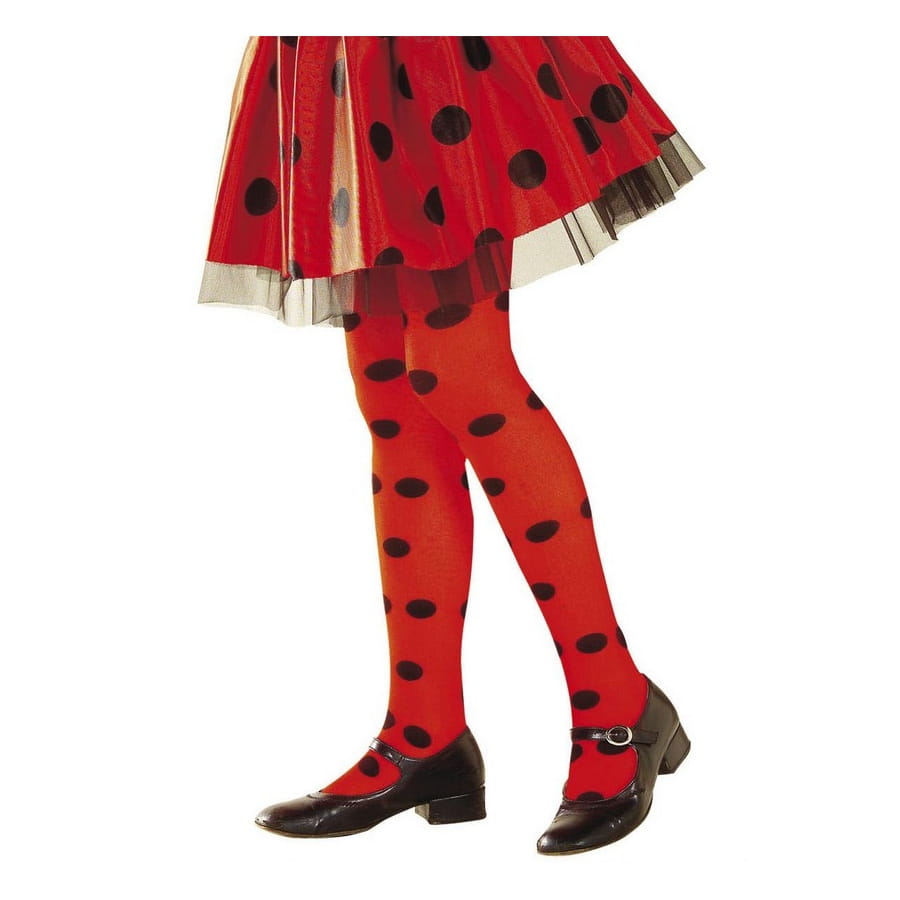 La paire de collants coccinelle pour enfant est rouge et imprimée de pois noirs.