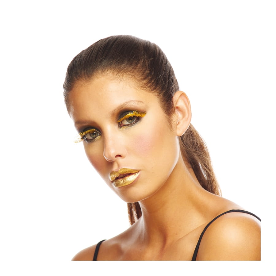 De la dorure sur le bout des cils ! Retrouvez une paire de faux cils dorés métallisés pour sublimer votre make-up. Ces faux cils mettront en valeur votre regard dans leur magnifique couleur or et bronze. Ils reflètent la beauté et l'élégance dans le style années 70. Ils sont légèrement métallisés pour un effet des plus originaux.