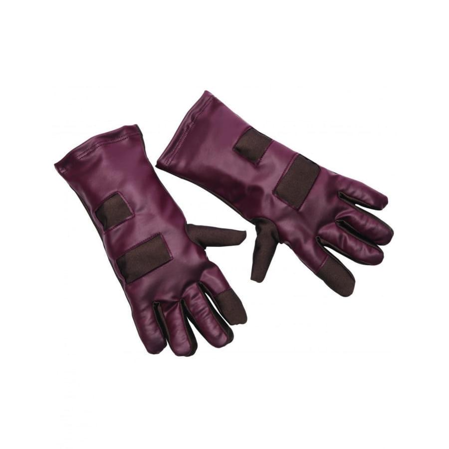 La paire de gants de Star Lord pour adulte est faite à partir d'un tissu effet cuir de couleur bordeaux.