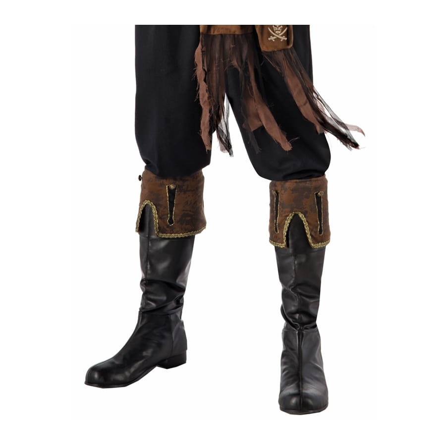Pour devenir un vrai pirate, il ne faut rien négliger, et surtout pas les petits détails. Alors, pensez à cette paire de hauts de bottes marron de pirate si vous voulez vraiment incarner un capitaine pirate lors de votre prochaine fête déguisée. Ces revers de bottes sont de couleur marron, en imitation cuir, bordés de magnifiques liserés dorés. Cet accessoire pourra aussi bien convenir à un déguisement de pirate pour femme qu'à une tenue de pirate pour homme.