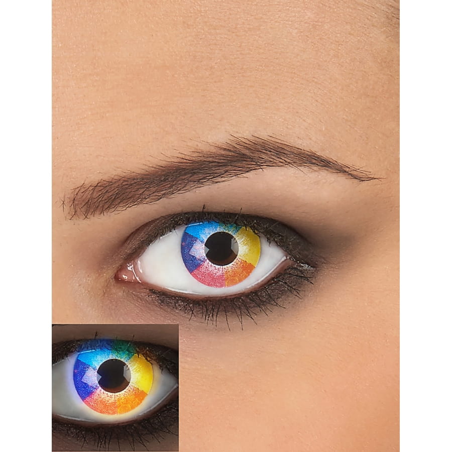 Changez votre regard le temps d'un carnaval ou d'une soirée déguisée avec cette paire de lentilles UV arc-en-ciel pour adulte.
