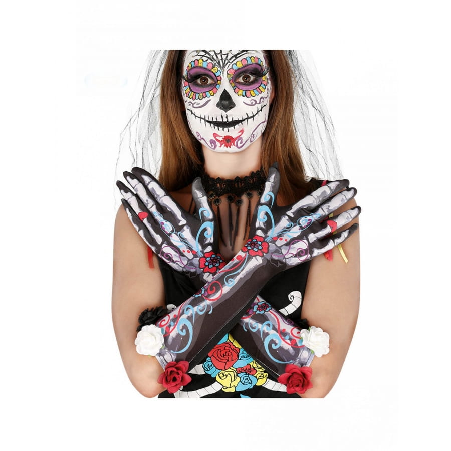 Cette Paire de longs gants dia de los muertos pour femme sera parfaite pour compléter votre déguisement lors de la fête des morts mexicaine.