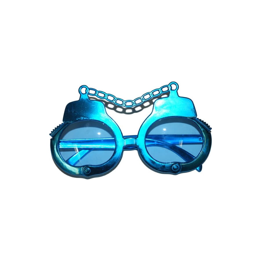 Facilement remarquable, cette paire de lunettes en forme de menottes va attirer l'attention de vos amis. Il s'agit de lunettes en plastique formées par une monture en forme de menottes. Le contour est de couleur gris métallique tandis que les verres sont teintés. Vous pourrez utiliser l'accessoire pour compléter de manière originale votre déguisement de prisonnier.